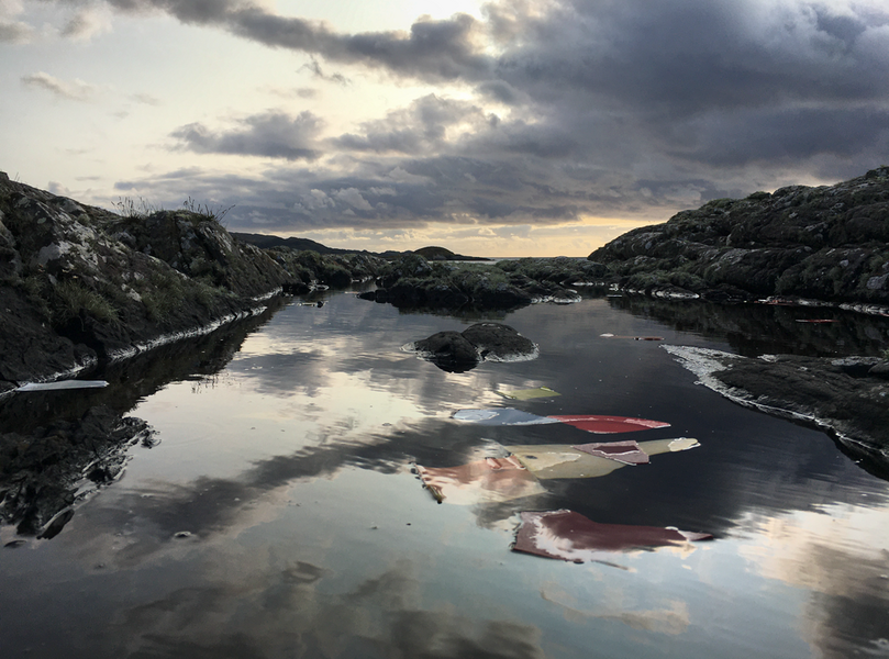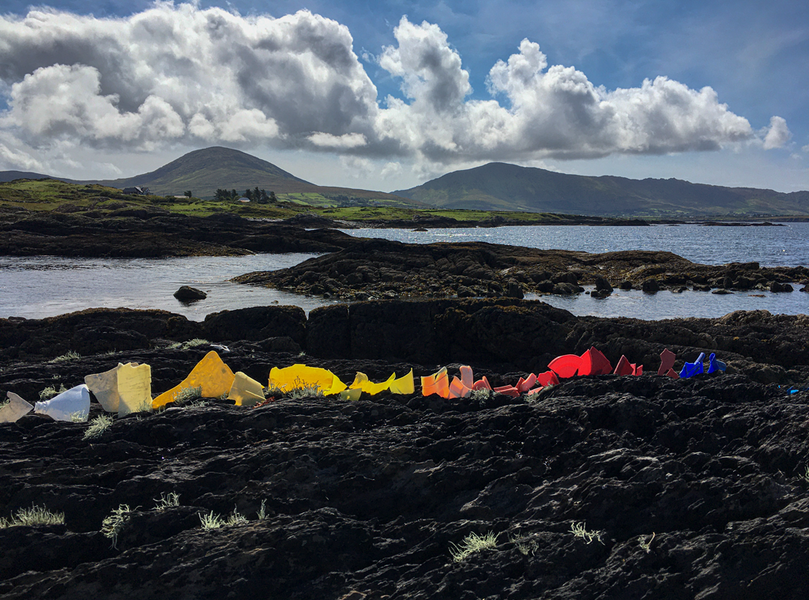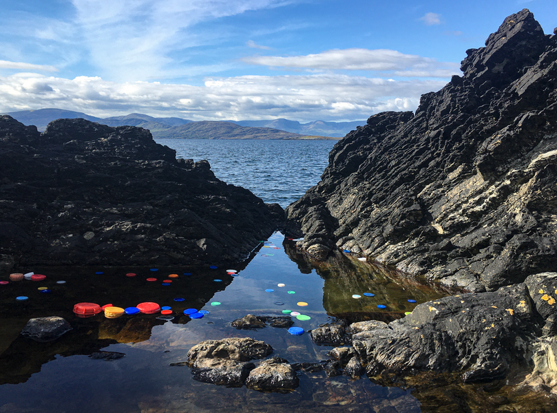 Landschaftsgestaltung mit eingesammeltem Plastik vom Strand. Zuerst wird aufgeräumt, dann beginnt die Gestaltung. Work in Progress.