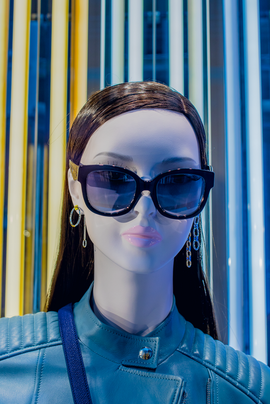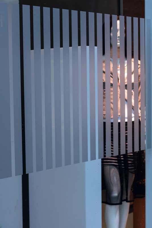 Fotografien von Schaufenstern, aufgenommen aus der Sicht eines Fußgängers, fotografiert durch die Glasscheibe hindurch. Die Gesichter von Schaufensterpuppen und deren Stofflichkeit stehen im Vordergrund, die Inszenierung der Mode dient als Kulisse. Portraits werden zu Stillleben.